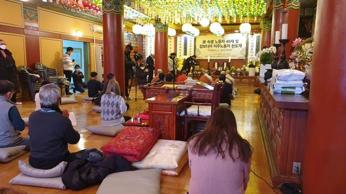 | ▲ 지난 7일 서울 종로구 법련사에서 열린 속헹씨 49재 포천 비닐하우스 내 숙소에서 사망한 캄보디아 여성 이주 노동자 속헹씨의 극락왕생을 비는 지난 7일의 49재 모습 [연합뉴스 자료 사진. DB 및 재배포 금지] |