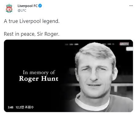 리버풀 구단은 28일(현지시간) 홈페이지를 통해 "구단의 전설인 로저 헌트의 사망에 애도를 표한다"라며 "리버풀에서 뛰면서 492경기에 출전해 285골을 터트린 헌트는 지병과 싸우다 편안하게 잠들었다"고 전했다.