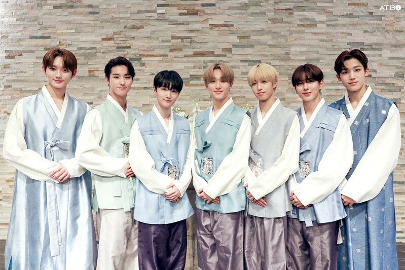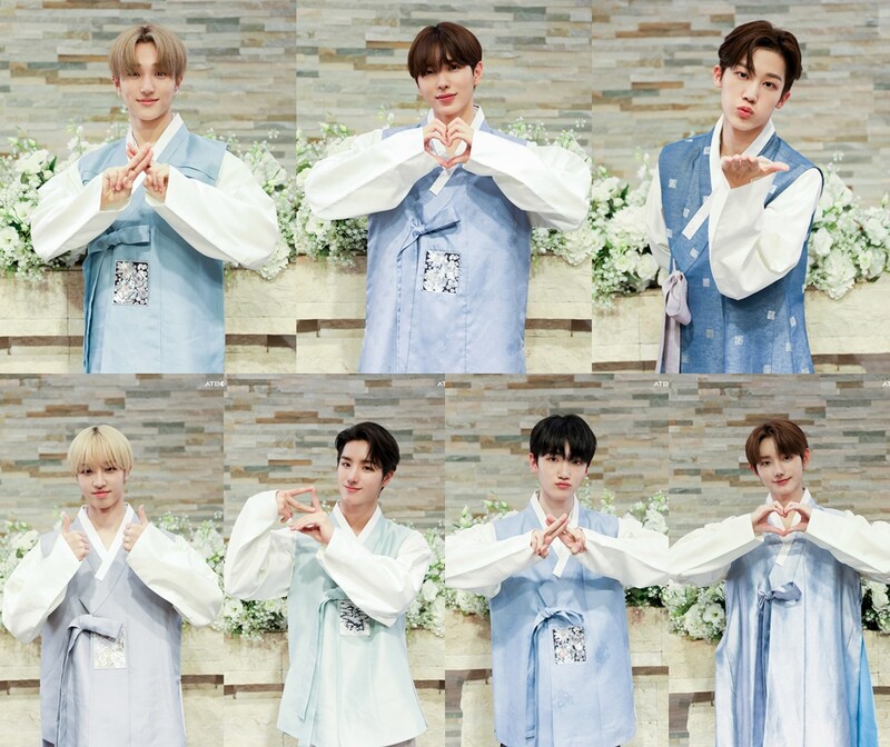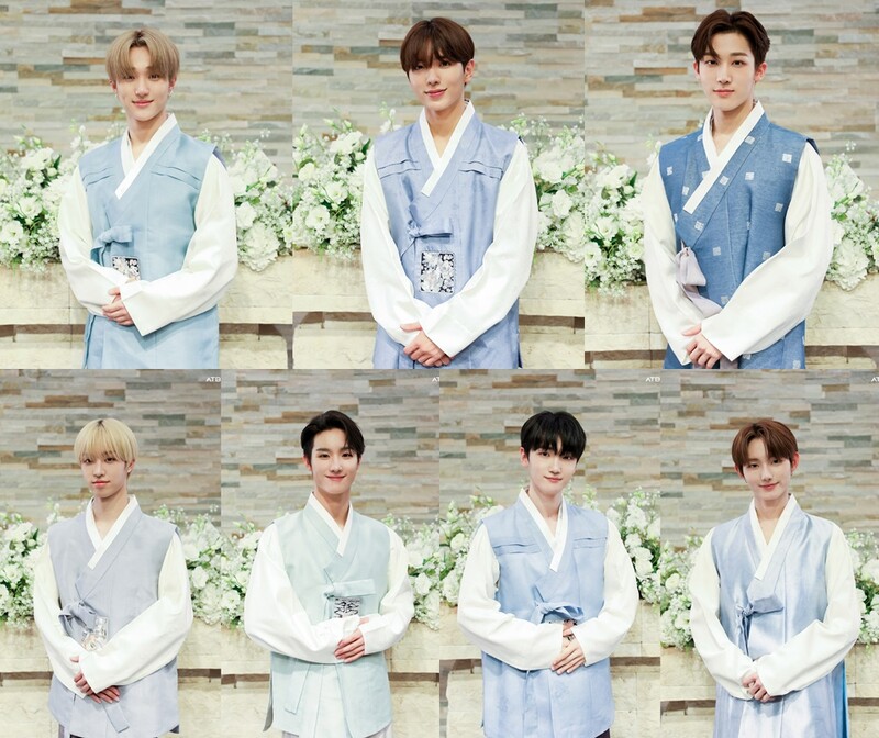 These photos, provided by IST Entertainment, show Chuseok Holiday greeting photos of rookie boy group ATBO wearing Hanbok, the traditional clothing of Korea.
