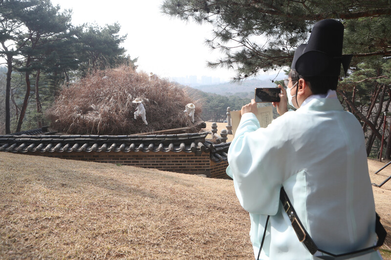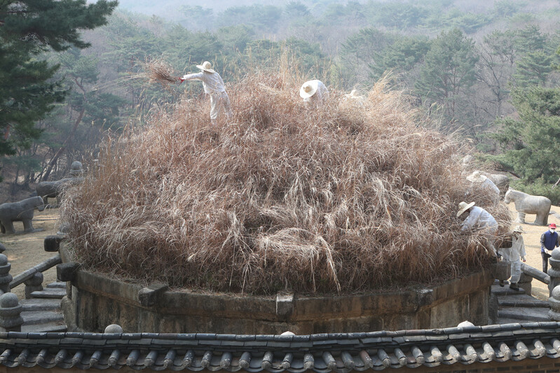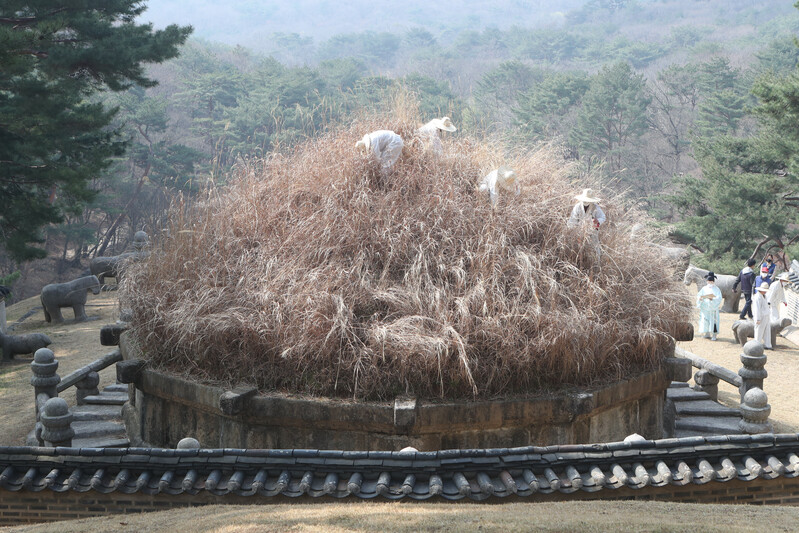 At Donggureung, a cemetery for the royal tombs of the Joseon Dynasty, in Guri-si, Gyeonggi-do, on the 6th, the Hansik day, or the 105th day after the winter solstice, tomb managers were seen cutting silver grass for Geonwonneung, the tomb of Taejo Yi Seong-gye, the founder of the Joseon Dynasty.