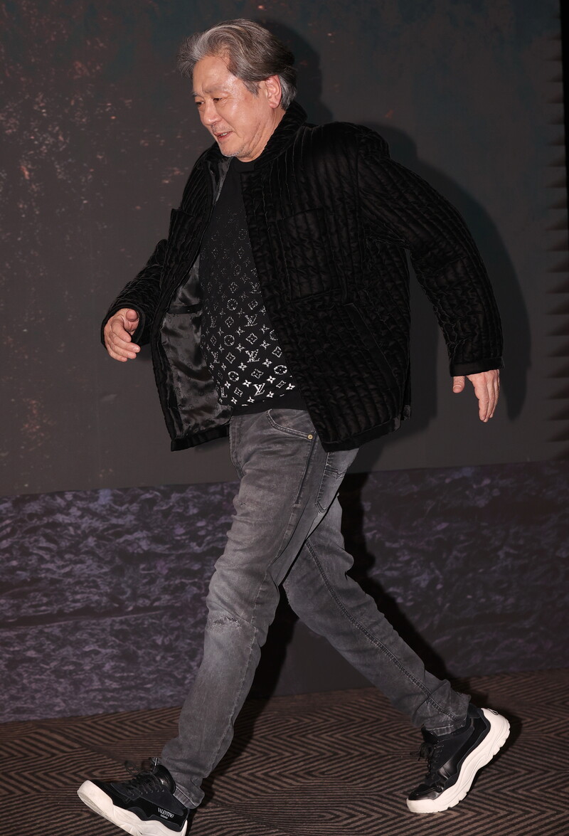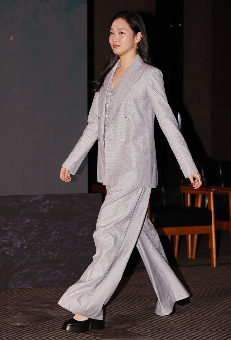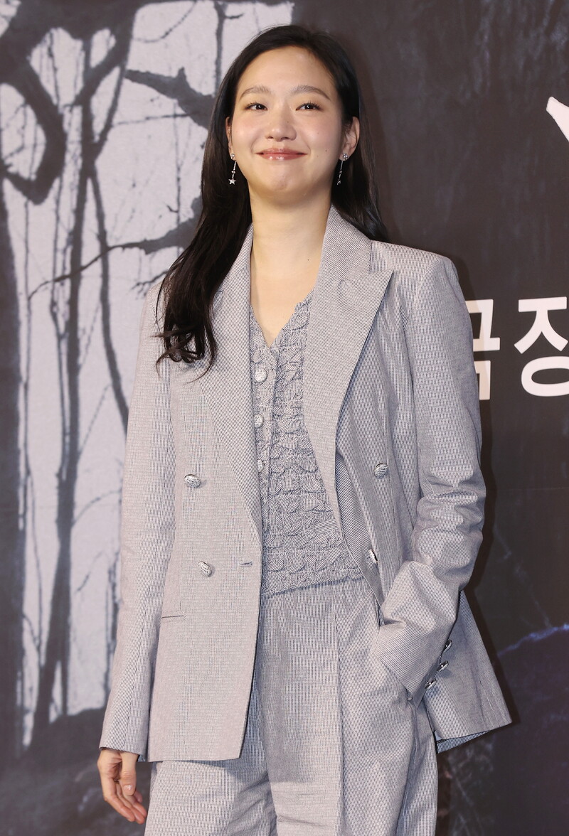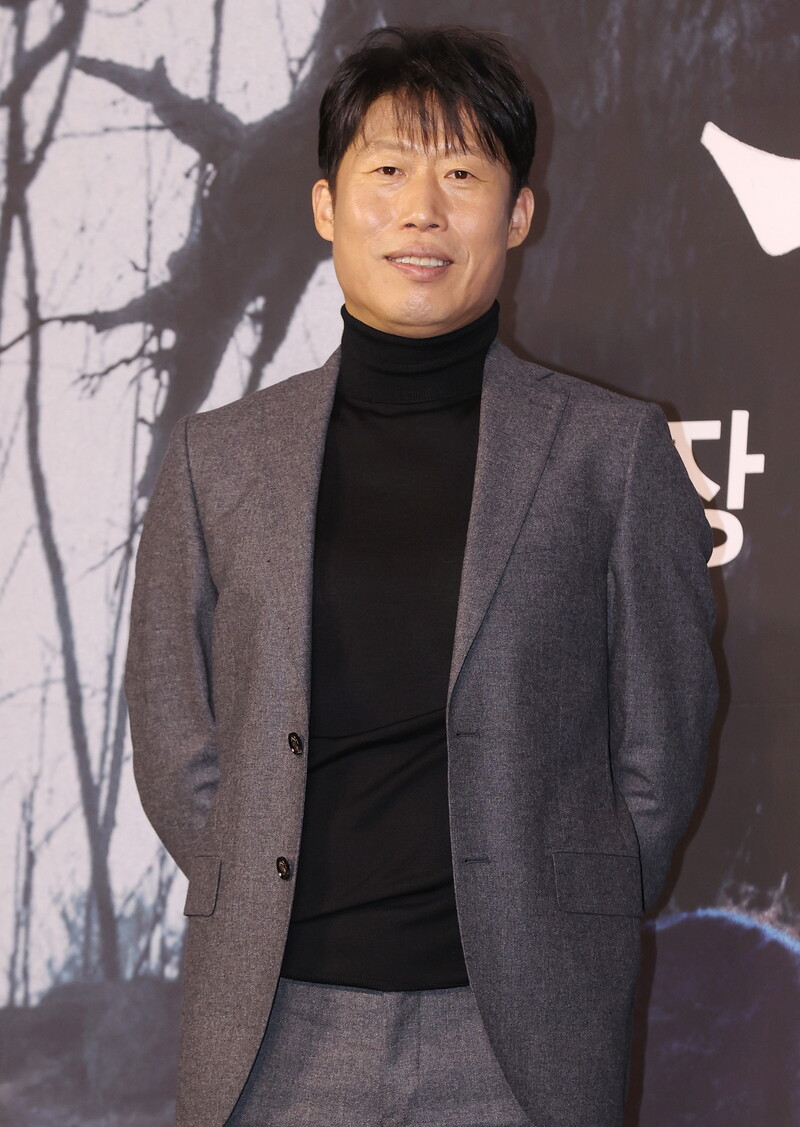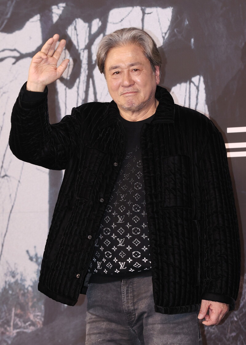 The stars of the new movie "Exhuma" Choi Min-sik, Kim Go-eun and Yoo Hae-jin along with director Jang Jae-hyun, attend a publicity event in Seoul on Jan. 17, 2024. The movie will be released in South Korea in February.