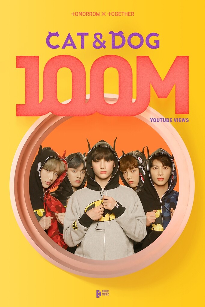 SEOUL, August 31 (Yonhap) -- K-pop boy group Tomorrow x Together’s “Cat & Dog” exceeded over 100 million YouTube views, announced group’s agency BIGHIT Music on August 28.