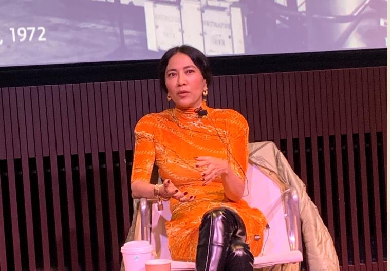 | ▲ 한국계 미국인 개념 미술가 아니카 이 (런던=연합뉴스) 최윤정 특파원 = 영국 런던 테이트 모던에서 11일(현지시간) 한국계 개념예술가 아니카 이가 현대 커미션 전시 관련 기자회견을 하고 있다. 2021.10.12 merciel@yna.co.kr |