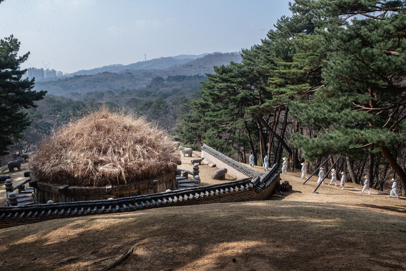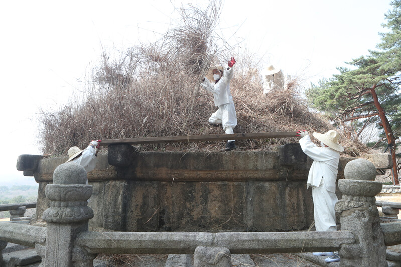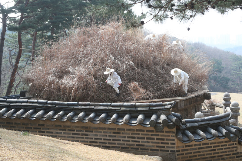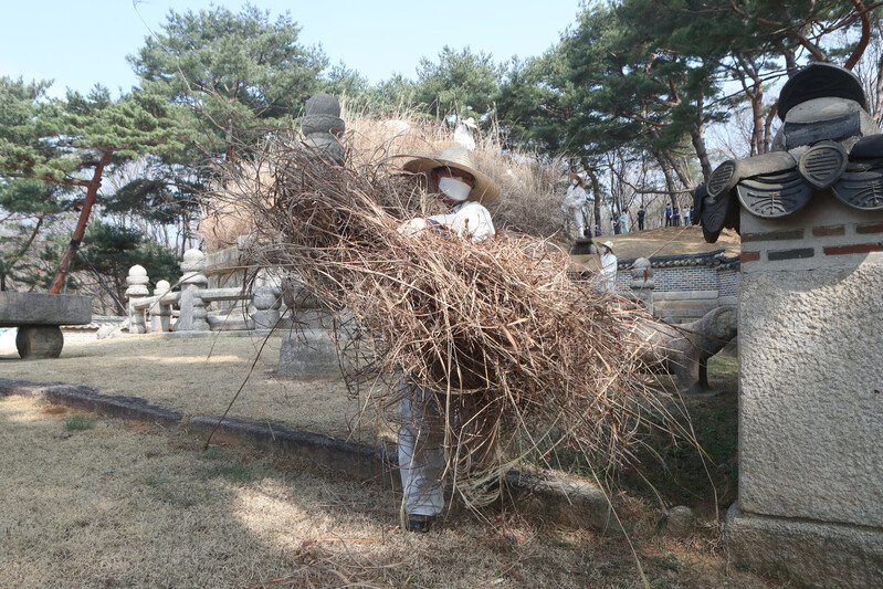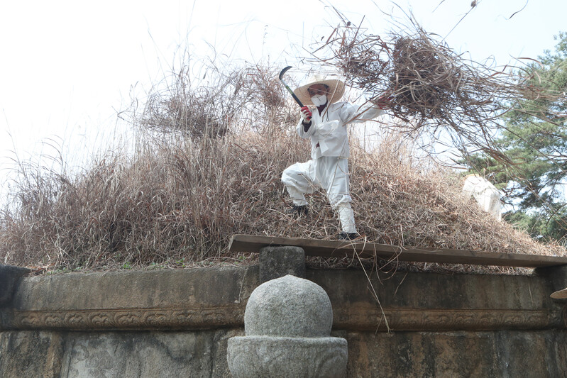 At Donggureung, a cemetery for the royal tombs of the Joseon Dynasty, in Guri-si, Gyeonggi-do, on the 6th, the Hansik day, or the 105th day after the winter solstice, tomb managers were seen cutting silver grass for Geonwonneung, the tomb of Taejo Yi Seong-gye, the founder of the Joseon Dynasty.