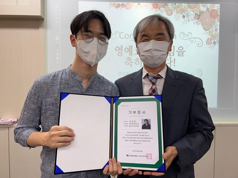 According to the school, Jang Dong-yoon’s donation will be used as a scholarship for freshmen students who enter the school under special screening system of admissions.