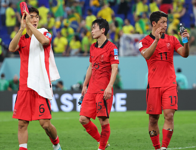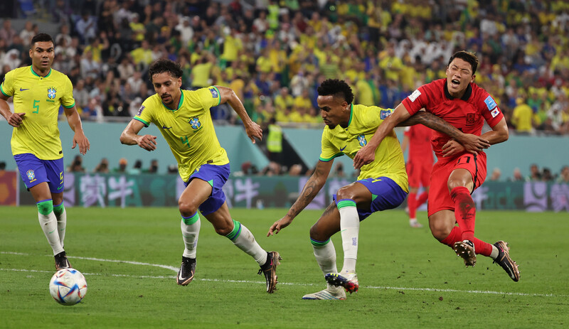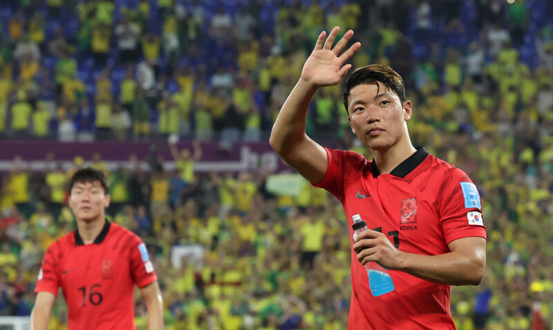 These photos show South Korean National team member Hwang Hee-chan at the 2022 World Cup match against Brazil on December 6.