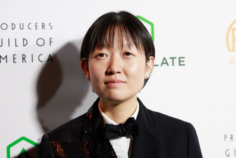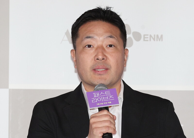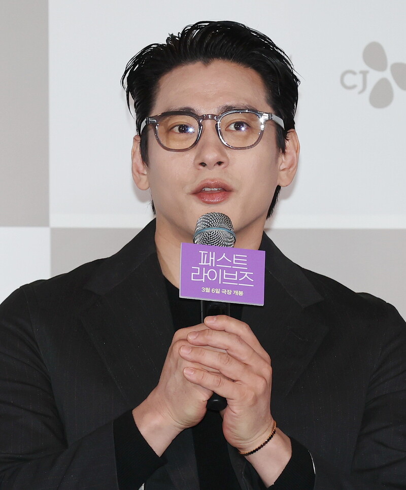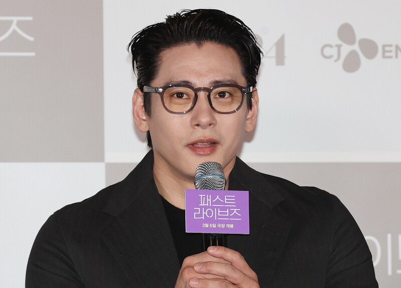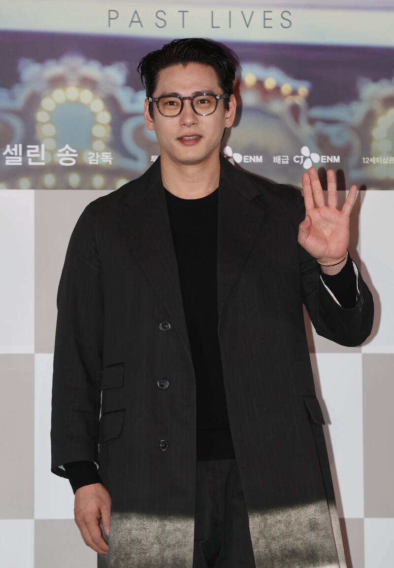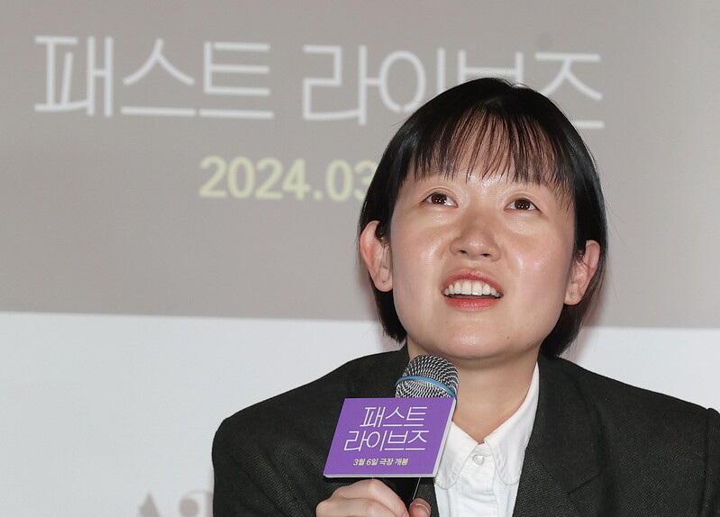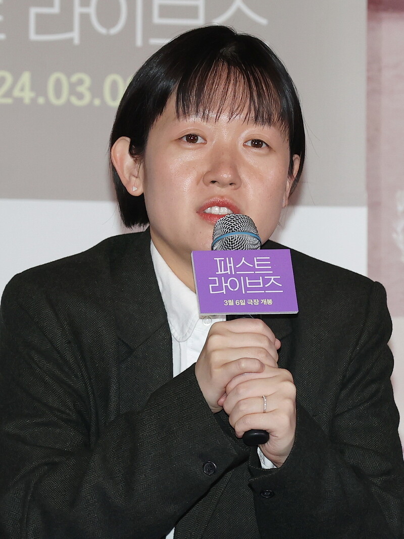 South Korean actor Yoo Teo who stars in the new movie "Past Lives," attends a publicity event along with director Celine Song in Seoul on Feb. 28, 2024. The movie will be released in South Korea on March 6. (Yonhap)