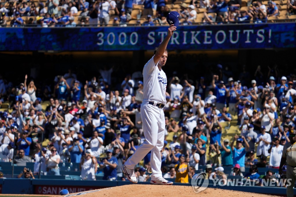 (서울=연합뉴스) 김경윤 기자 = '살아있는 전설' 맥스 셔저(37·로스앤젤레스 다저스)가 미국프로야구 메이저리그(MLB) 역사상 19번째 3천탈삼진 대기록을 달성했다.
