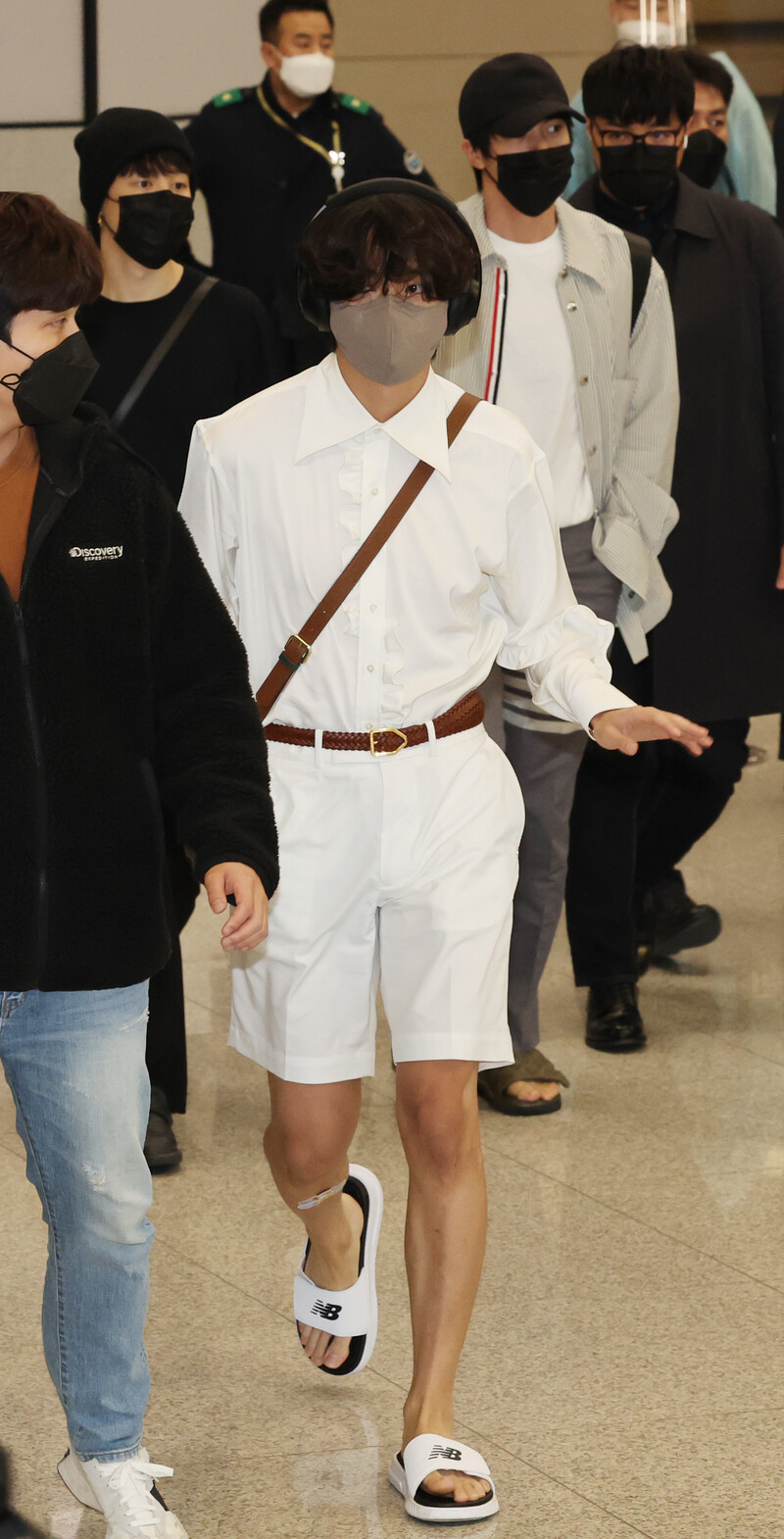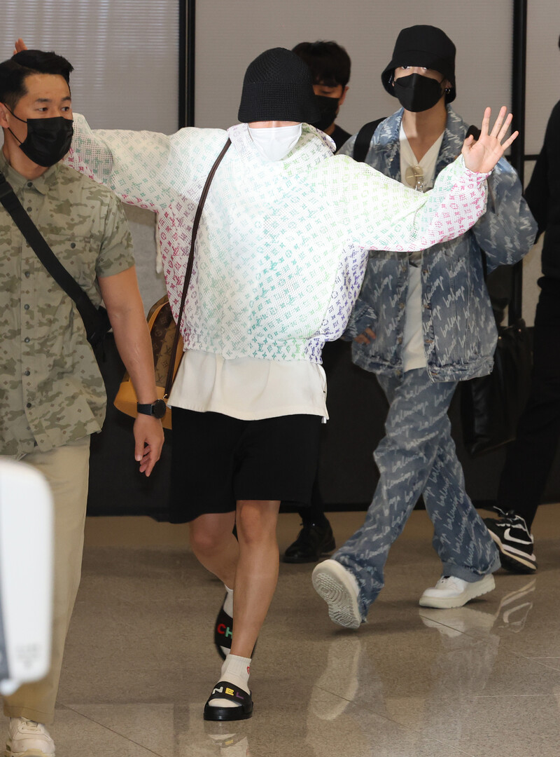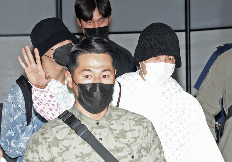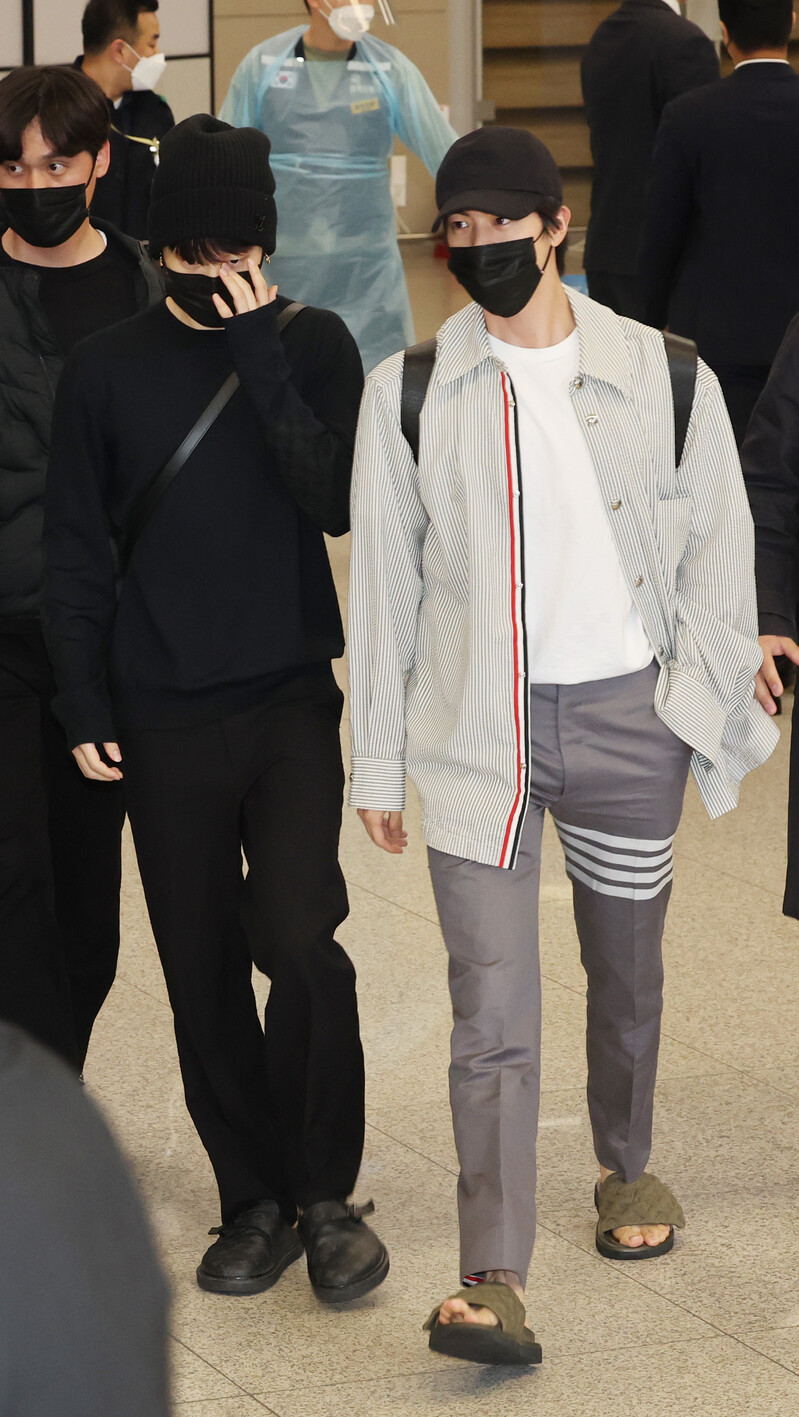 These photos, shows BTS arriving at the Incheon International Airport, South Korea after they have completed their schedule in the United States.