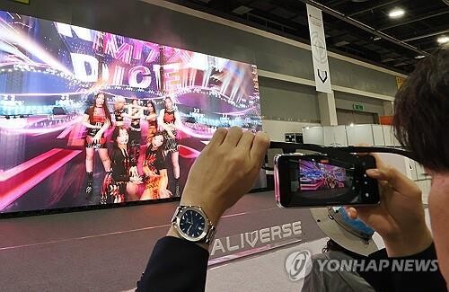 | ▲ A visitor at the '2024 Korea Metaverse Festival,' held at the aT Center in Seocho-gu, Seoul on October 17, 2024, is experiencing a 3D hologram idol performance. (Yonhap) |