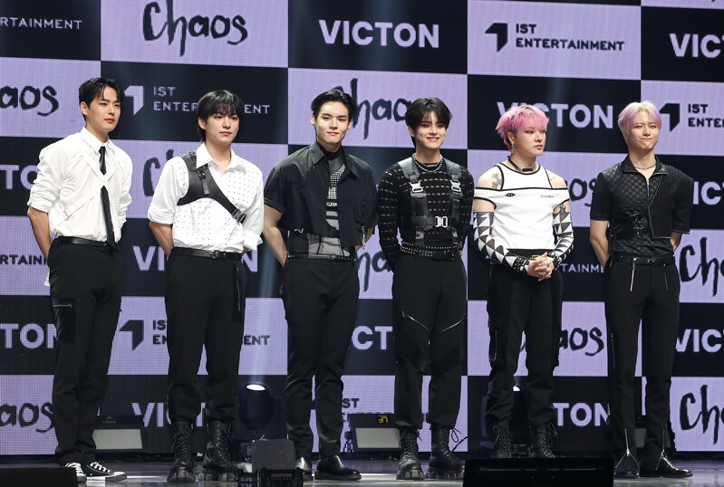 South Korean boy group Victon poses for a photo during a showcase to promote the group's seventh mini album "Chaos" in Seoul on May 31, 2022. (Yonhap)