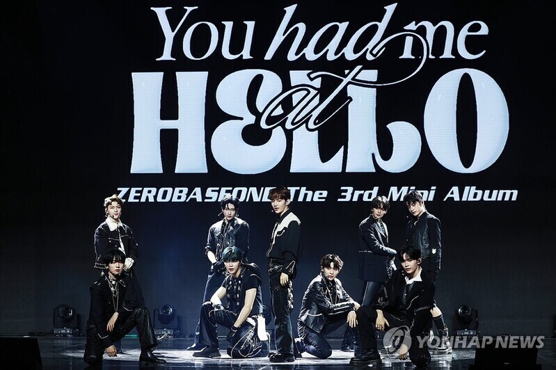 | ▲ K-pop boy group Zerobaseone performs the lead track of its upcoming third EP, "You had me at Hello," during a press showcase in Seoul on May 13, 2024. (Yonhap) |