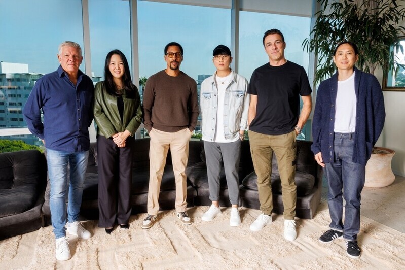 | ▲ SM-Kakao Entertainment North America Joint Venture meets Gamma for strategic partnership. From left stand Russ Lindsay, Co-founder of Moon&Back Media; Choi Jung-min, Chief Global Business Officer (CGO) of SM; Larry Jackson, CEO of Gamma; Jang Yoon-jung, Co-CEO of Kakao Entertainment; Ben Cook, UK & Europe President of Gamma; and Kevin Nishimura, COO of SM-Kakao Entertainment North America Joint Venture. (PHOTO NOT FOR SALE) (Yonhap) |
