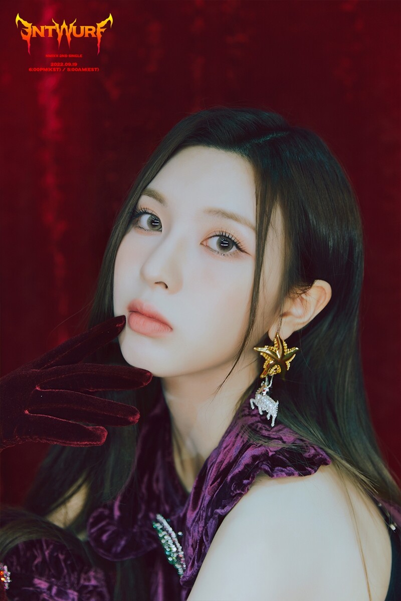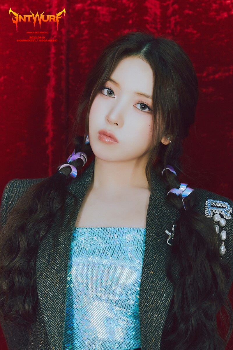 These photos, provided by JYP, show photos of girl group NMIXX for their second single "ENTWURF," which will be released on Sept. 19.