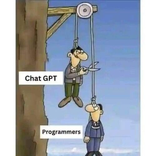 When the string is cut, it appears that the programmer will fall, but AI, like ChatGPT, also cannot hang on to the cliff alone. The two are inextricably linked, sharing a common fate.