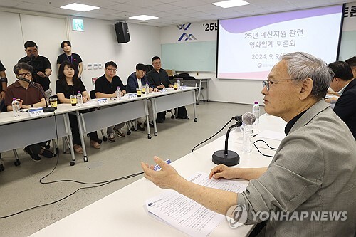 Key industry figures, including representatives from theaters, production companies, distributors, and investors, welcomed the announcement during a discussion on film industry funding held by Culture Minister Yu In-chon at the National Museum of Modern and Contemporary Art in Seoul on the 9th.