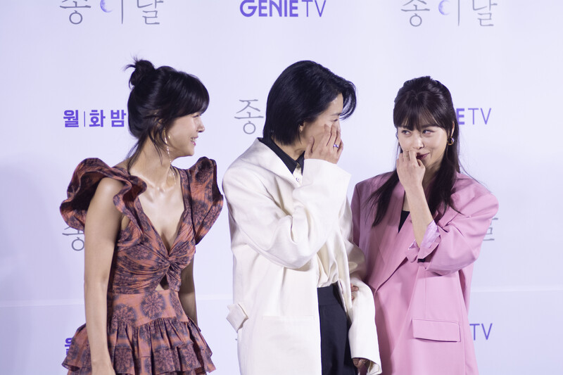 These photos, taken during the press conference of the S.Korean drama series "Pale Moon" show actors and actresses from the series at the scene.