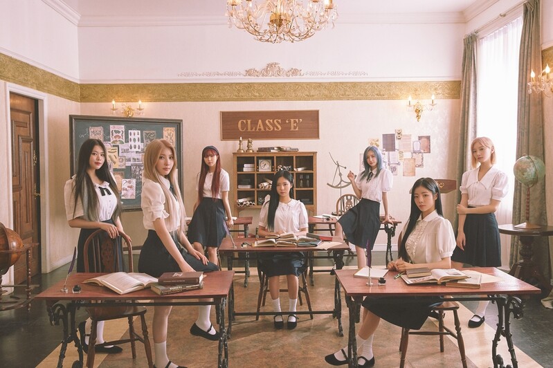 In the music video of “Nerdy,” Purplekiss’s seven members, dressed as witches, encourage nerds to confidently show off themselves.