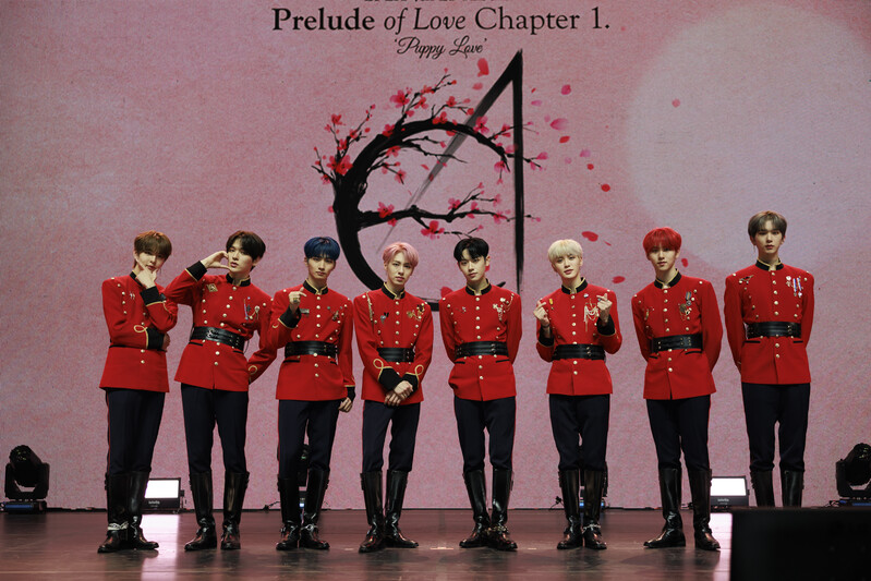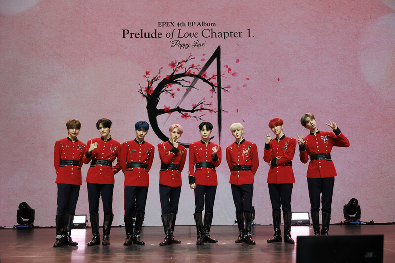 These photos, provided by C9 Entertainment, show boy group EPEX's group photo during their online media showcase which was held on October 26, at 5.p.m. (KST).