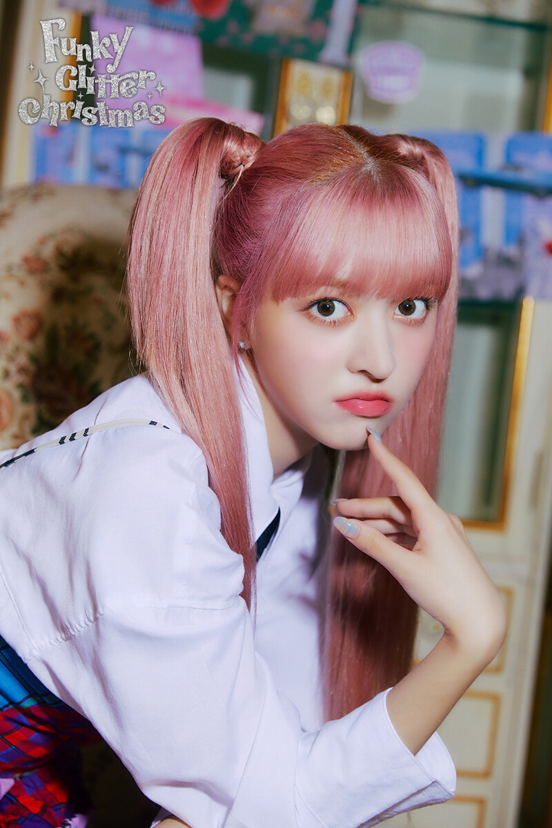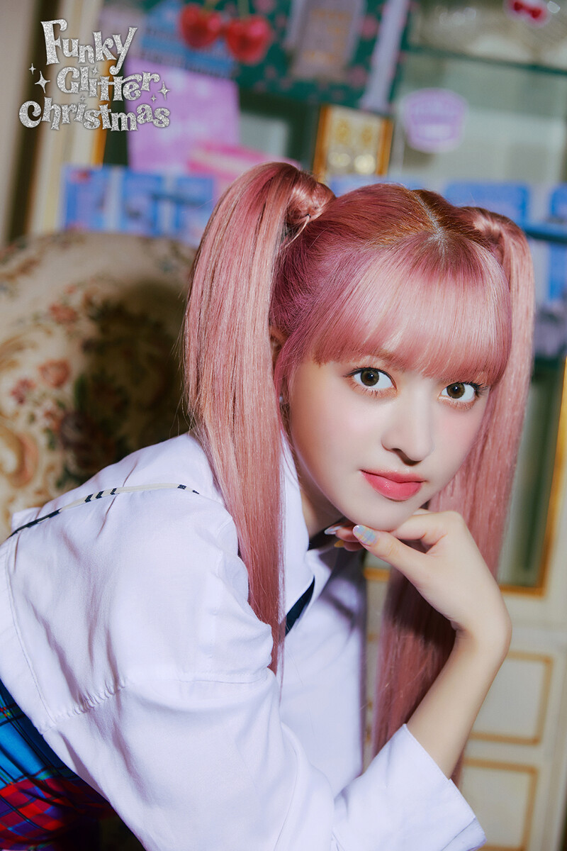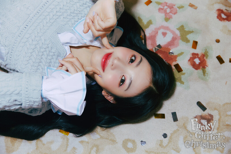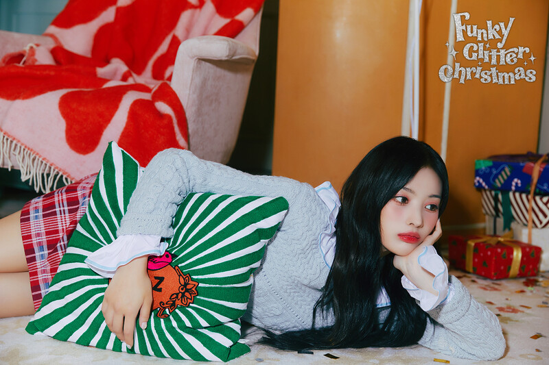 These photos, provided by JYP Entertainment shows, members of Rookie K-pop girl group NMIXX's concept photos of members Lily, Haewon, and Jinni for their upcoming digital single "Funky Glitter Christmas" which will drop on November 23.