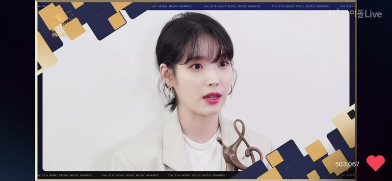 IU, who showed off her aspect as a "music queen" by hitting "Celebrity" and "LILAC" one after another last year, won the "Best Song Award" at the awards ceremony.