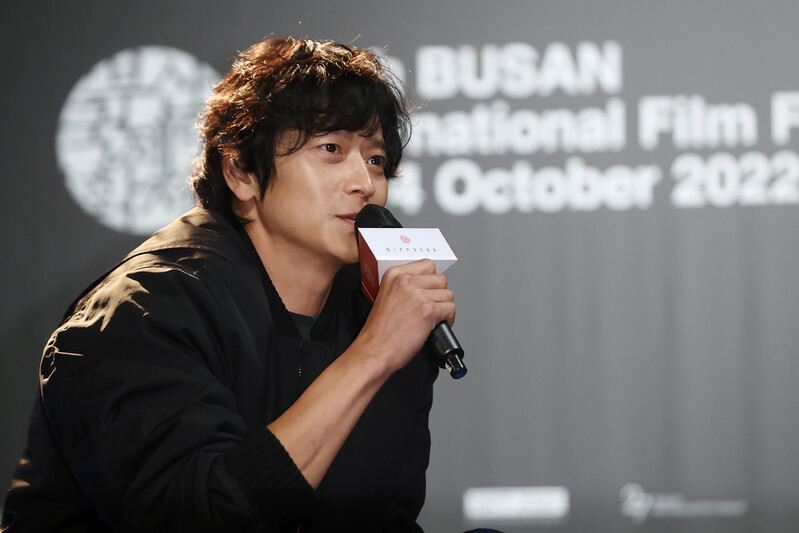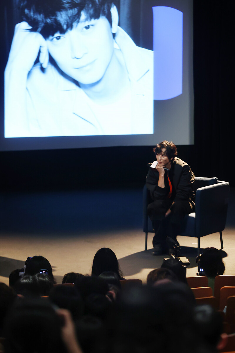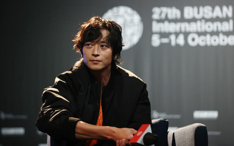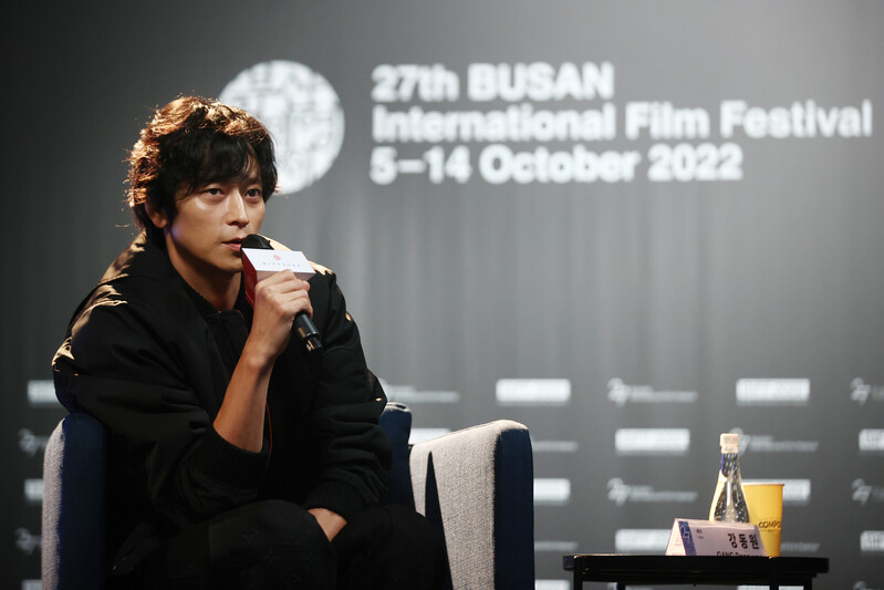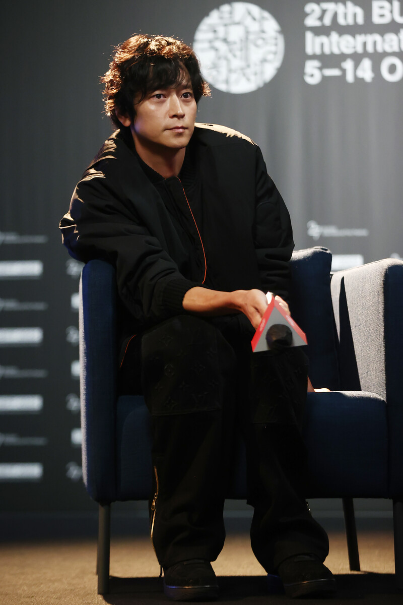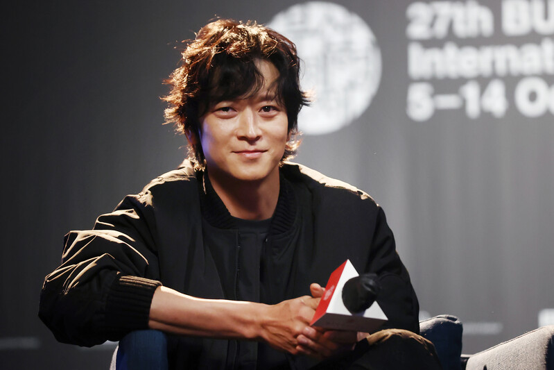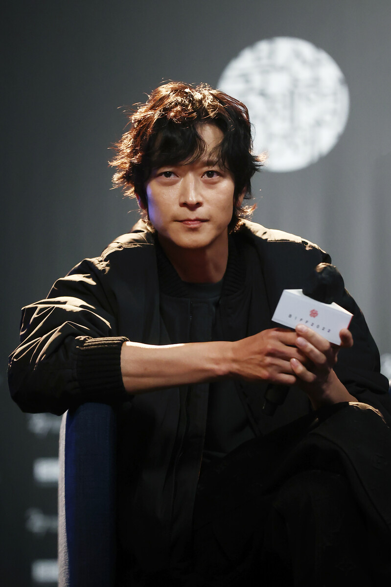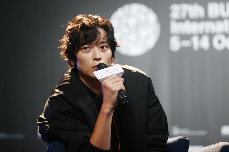 These photos show actor Gang Dong-won at 27th BIFF "Actors House," which took place at KNN theater in Busan.