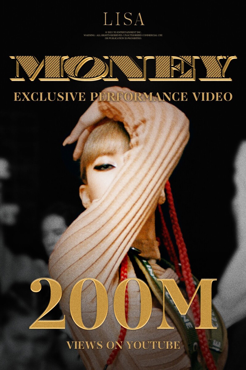 Exclusive Performance Video for “MONEY,” a solo track included in the artist’s recent solo album, has surpassed 200 million vies on YouTube at around 2:14 a.m. on Nov. 1, her agency YG Entertainment announced. This is a record in about 38 days of the video’s release.
