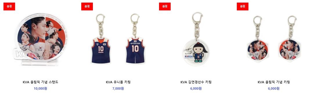 이 중 김연경 선수 유니폼 모양의 키링은 판매를 시작한 지 5분 만에 재고가 소진됐다. KVA몰은 오는 11일 2차 판매에 돌입한다.