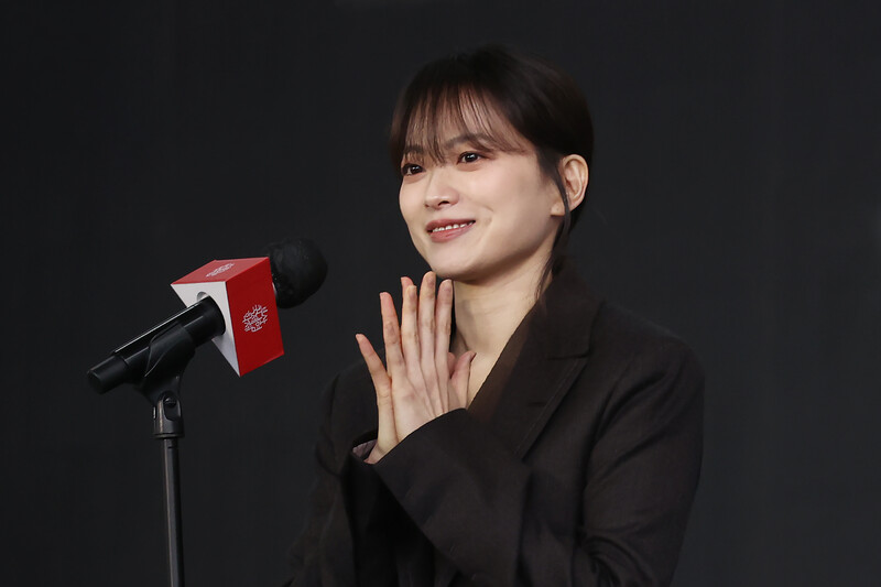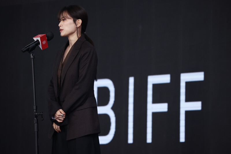 Actress Chun Woo-Hee talking about the movie "Anchor" at 27th BIFF.