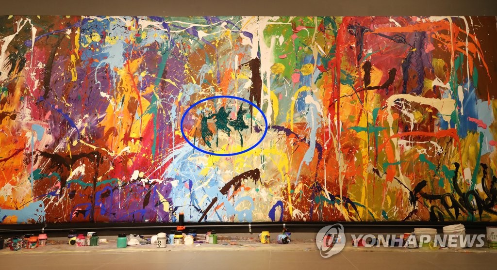 앞서 지난달 28일 이 전시장을 방문한 20대 남녀 연인이 작품에 녹색 붓 자국을 남겼다. 기획사 측은 이를 112에 신고했다가 훼손에 고의성이 없었다고 판단하고 신고를 취소해 사건은 현장에서 종결됐다.