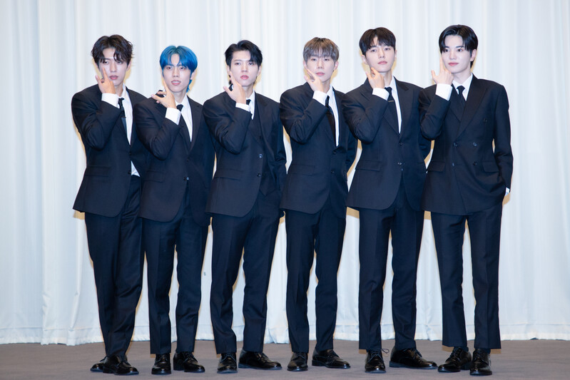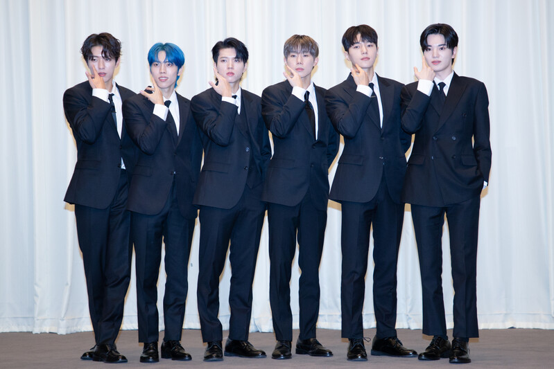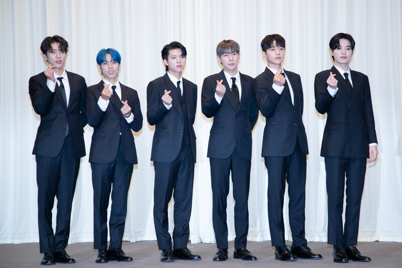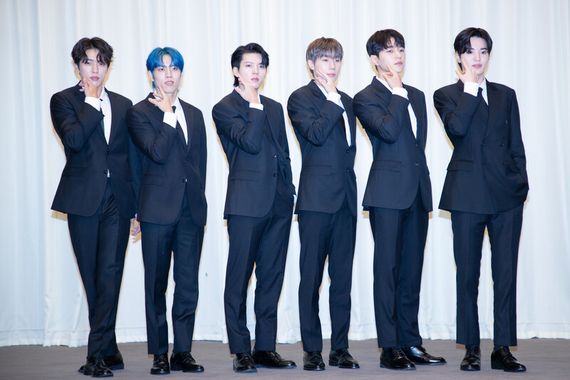 These are some of the photos taken from the press conference of the K-pop boy group Infinite's "13egin."
