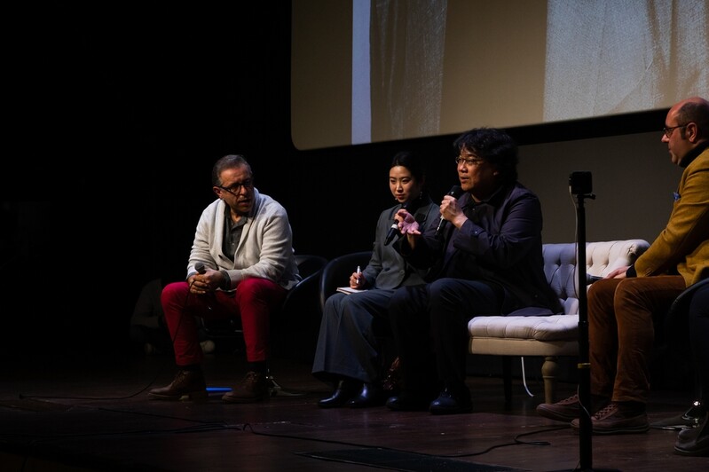 "I was surprised that there were so many people who are engaged with writing scenarios," adding, "I personally knew a little about the history of Italian films, liked it and envied the strong tradition and history of Italian films. I firmly believe there will be a person within the audience who will bring light to the history of Italian films here," director bong stated while receiving a big round of applause.