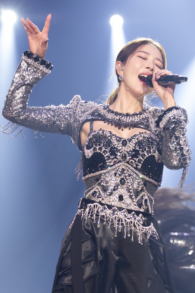The 36-year-old singer opened her concert with “Breathe” from her 3rd EP, wearing a sparkling costume. In line with the band’s ensemble, she showed off her exquisite vocal skills by performing seven songs in a row, including “Copy& Paste” and “Hurricane Venus.” She then poured her heart despite not feeling perfectly well from the cold she caught a month ago. During the stage of “Forgive Me,” she even played the guitar herself as if she were a member of a rock band.