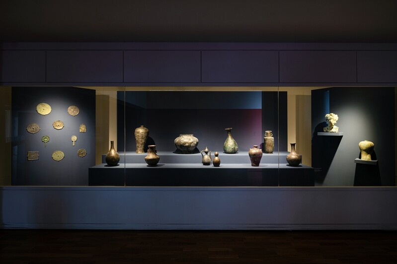 The “Fossil-Like Time Series,” which had silver and copper foil wrapped around the ceramic-looking soaps, blends in and harmonizes with the bronze mirrors from the Goryeo and Joseon dynasties that are displayed together to the point that they are hard to distinguish from one another.