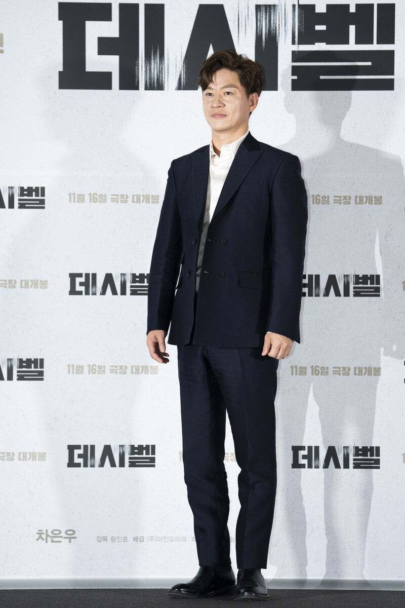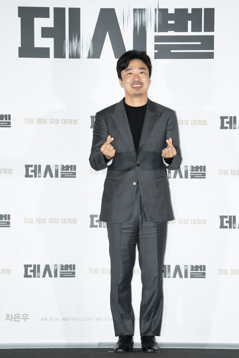 These photos, provided by East Dream Synopex, show actors during the press conference of the movie "Decibel" which will be released on November 16.