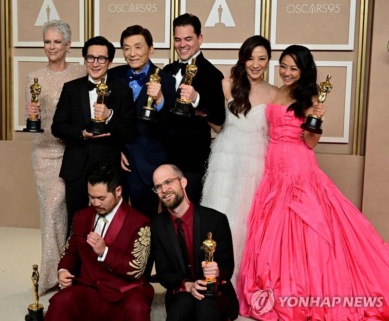 A total of 13 films were honored with Oscars, including "Everything Everywhere All At Once," which won seven awards at the Academy Awards held at the Dolby Theater in Los Angeles on the 12th (local time).