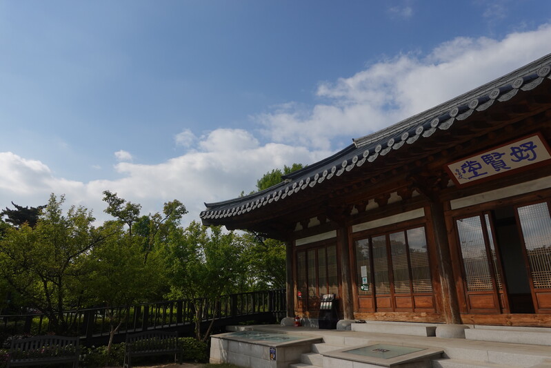 beautiful landscaping. On one side of the square stood the traditional Hanok