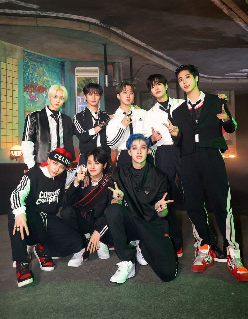 These photos, provided by JYP Entertainment, show the behind-the-scenes photos of K-pop boy group Stray Kids in their music video of the title song "MANIAC." The group released their new EP "ODDINARY" on March 18, 2022.