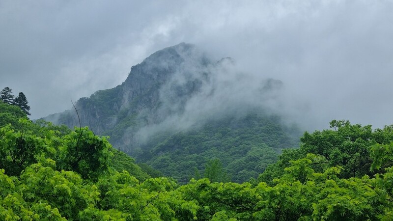 The black Baekhakbong Mountain behind Baekyang Temple was lightly covered with white mist, as if guiding us into a world of divine immortals.