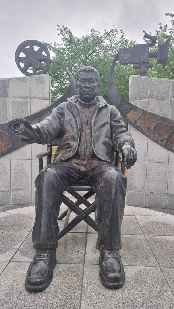 | ▲임권택 감독 동상. This photo shows a statue of South Korean film director Im Kwon-taek. |