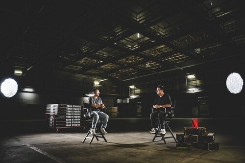 | ▲ South Korean director Yeon Sang-ho talks with Japanese director Shinzo Katayama in this photo provided by Netflix on Aug. 8, 2024. (PHOTO NOT FOR SALE) (Yonhap) |