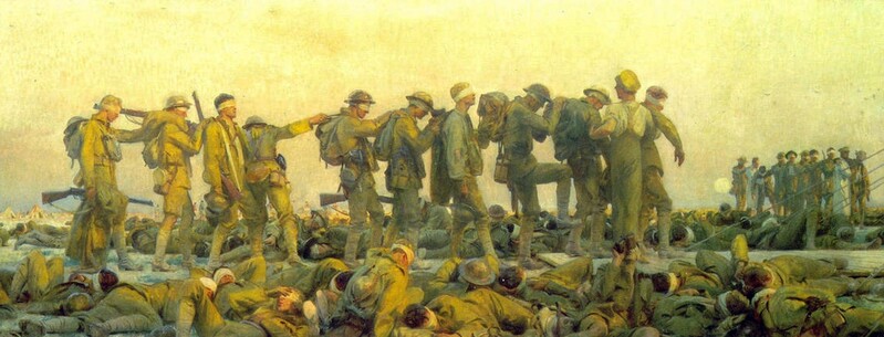 This is a painting, titled “Gassed”(1919) by American artist John Singer Sargent (1856-1925).
