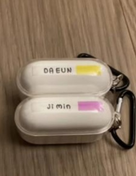 | ▲ An image of two earbud cases, labeled "Daeun" and "jimin,' captured from Song Da-eun's instagram posting. (PHOTO NOT FOR SALE) (Yonhap) |