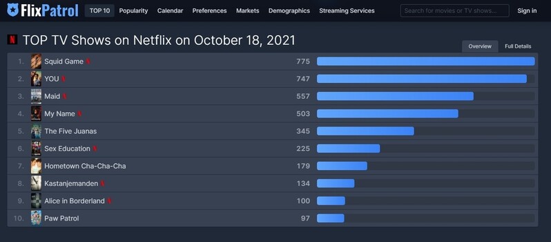 | ▲ This photo, a captured image from "Flix Patrol" website, shows global online contents service ranking site "Flix Patrol." (PHOTO NOT FOR SALE) (Yonhap) |