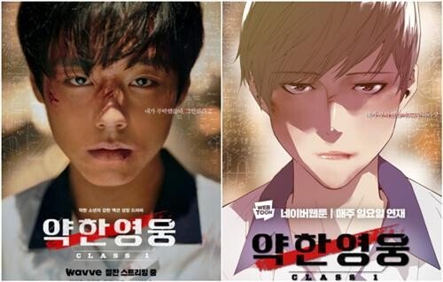 | ▲This photo provided by Naver Webtoon and Wavve show posters of 'Weak Class Hero 1.' (PHOTO NOT FOR SALE) (Yonhap) |