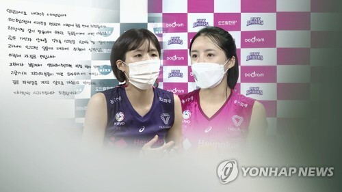 | ▲ This combined image shows volleyball players, Lee Jae-yeong and Lee Da-yeong during an interview as well as their handwritten apology letter. |