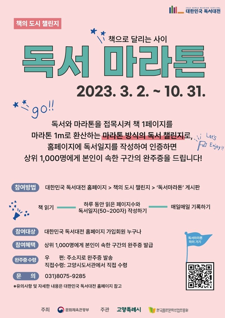 The upcoming Reading Marathon will be held from Mar. 2 to Oct. 31 in commemoration of the “2023 Korea Reading Competition” that will open in forthcoming September.