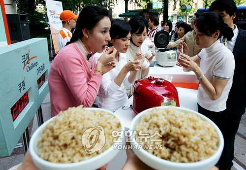 | ▲ This Yonhap file photo shows people tasting brown rice. (Yonhap) |