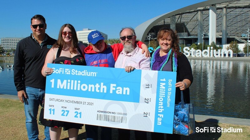 | ▲ This photo, provided by SoFi Stadium's official Twitter page, shows Harrison who has been designated as SoFi Stadium's 1 millionth admission. (PHOTO NOT FOR SALE) (Yonhap) |