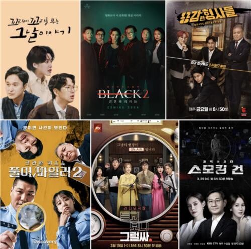 | ▲This photo provided by various broadcasting provider show various posters for crime shows. (PHOTO NOT FOR SALE) (Yonhap) |